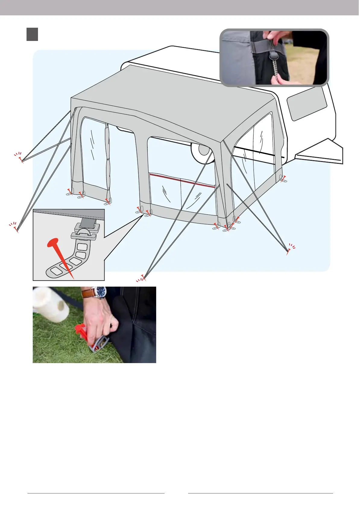 se to the caravan. Put the pegs with an angle like shown on the