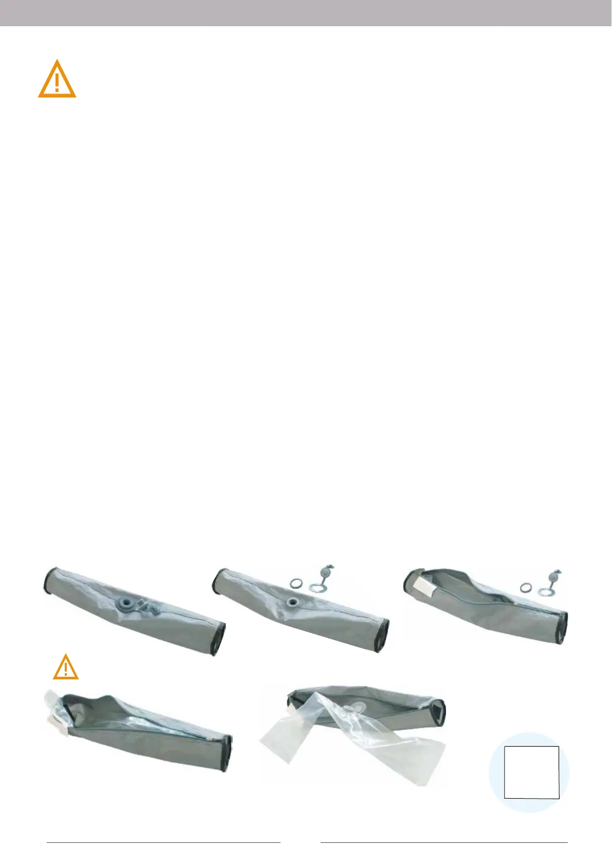 bladder could cause damage when it is inflated. Once the tube has been fitted zip the protective cover shut. YOU MUST