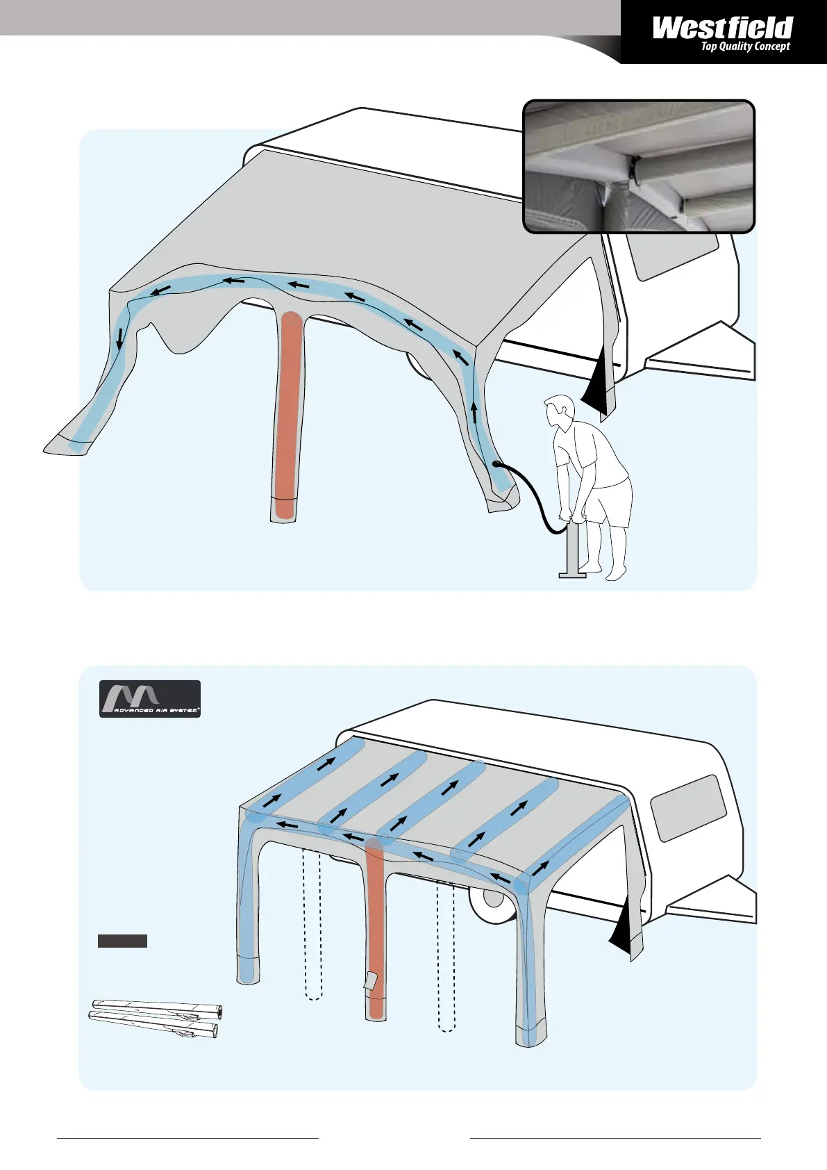 Durch unser AAS System können Sie Ihr gesamtes Zelt an nur einem Ventil aufpumpen.