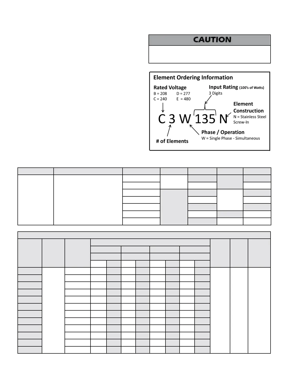 Table 3 - Element Kits and Corresponding Wattages / Voltages - For Element Kit Part #’s, See Replacement Parts, This Manual