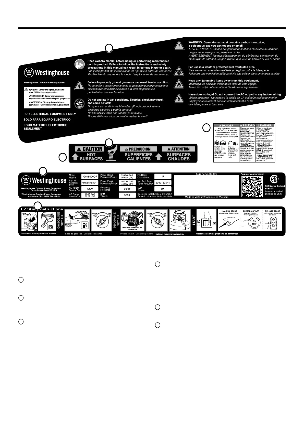 calcomanías de su generador.