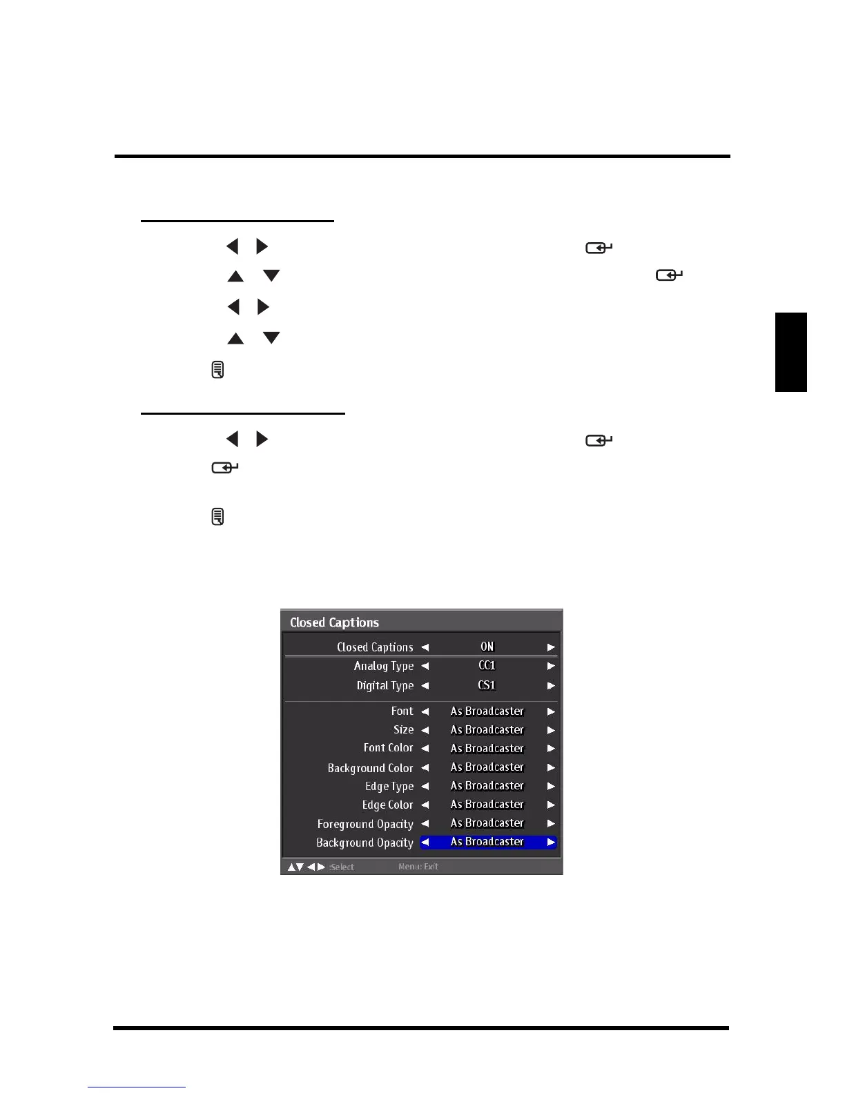 Use Closed Captions to configure the settings for closed captioning in TV programs.