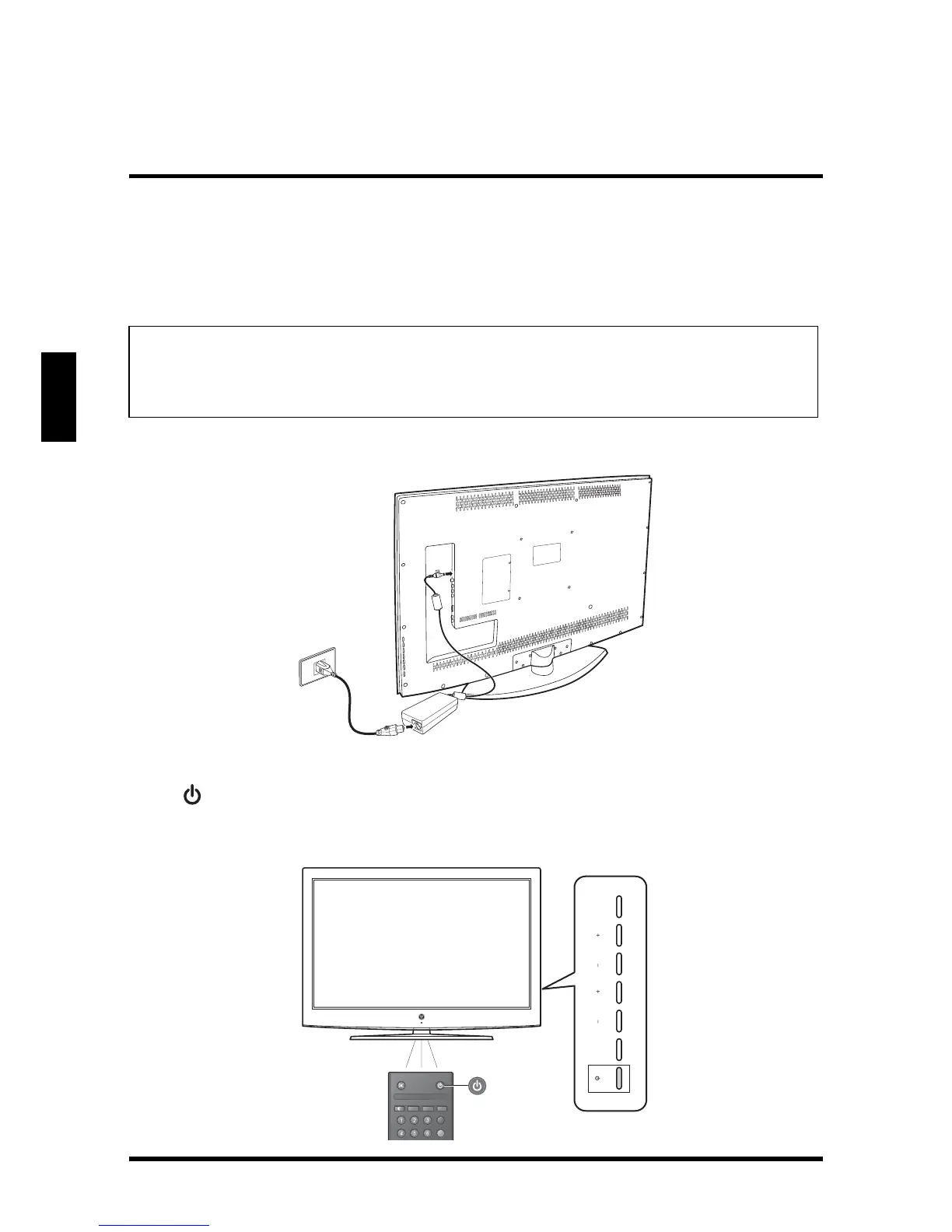 Connect the power cord of the AC to DC adapter to the LED TV then to a proper AC