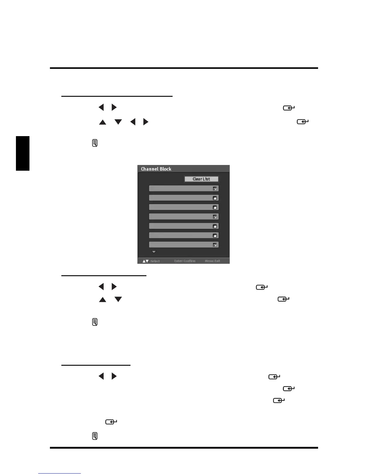 • Channel Block: Channel Block allows you to block channels.