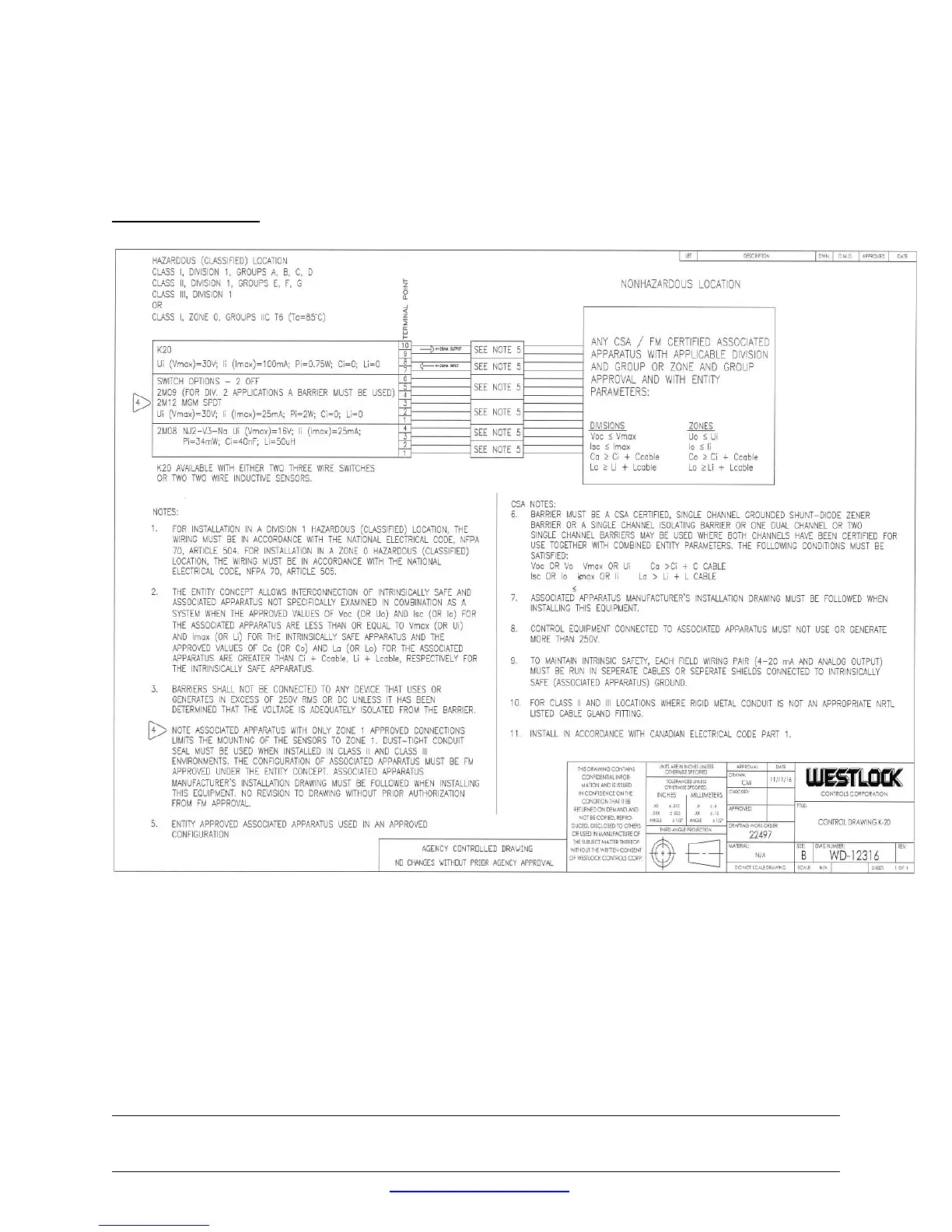 Westlock K20 - Appendix: Intrinsically Safe Wiring