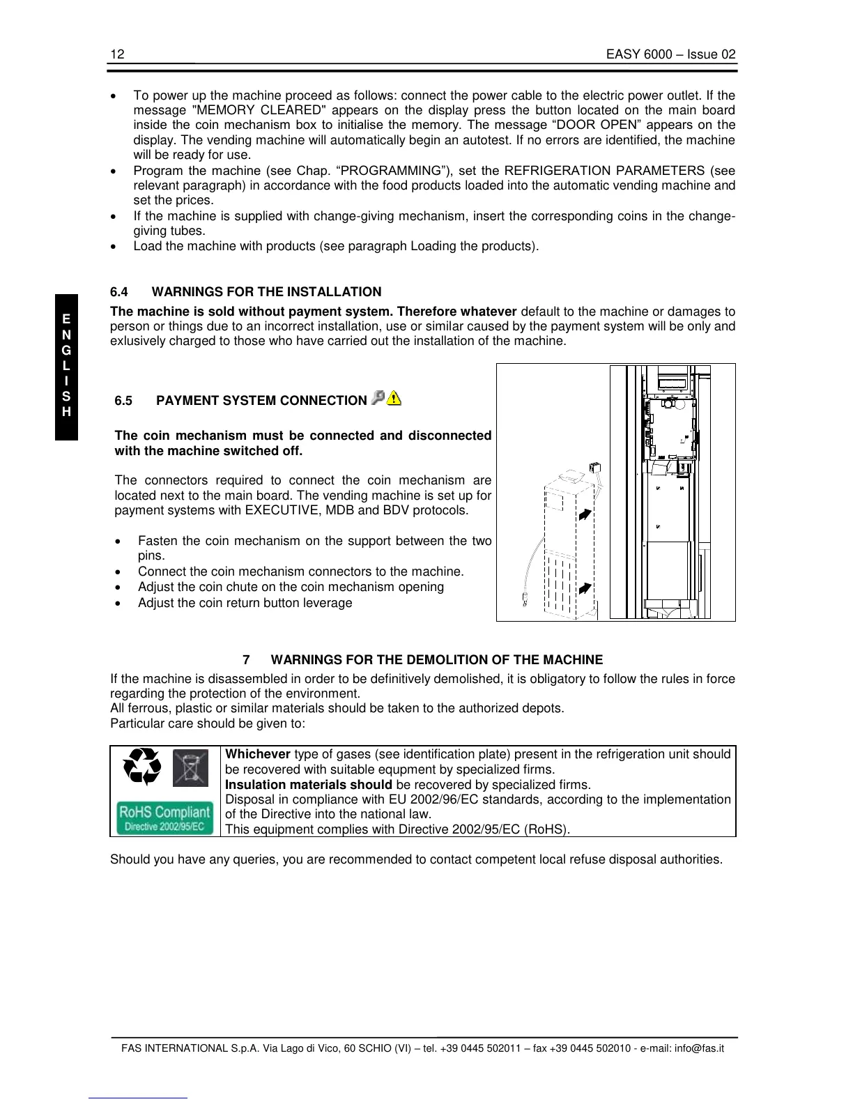FAS INTERNATIONAL S.p.A. Via Lago di Vico, 60 SCHIO (VI) – tel. +39 0445 502011 – fax +39 0445 502010 - e-mail: info@fas.it