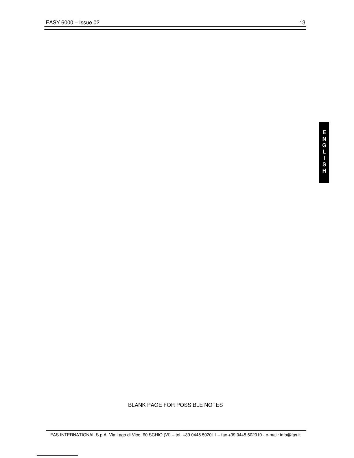 FAS INTERNATIONAL S.p.A. Via Lago di Vico, 60 SCHIO (VI) tel. +39 0445 502011 fax +39 0445 502010 - e-mail: info@fas.it