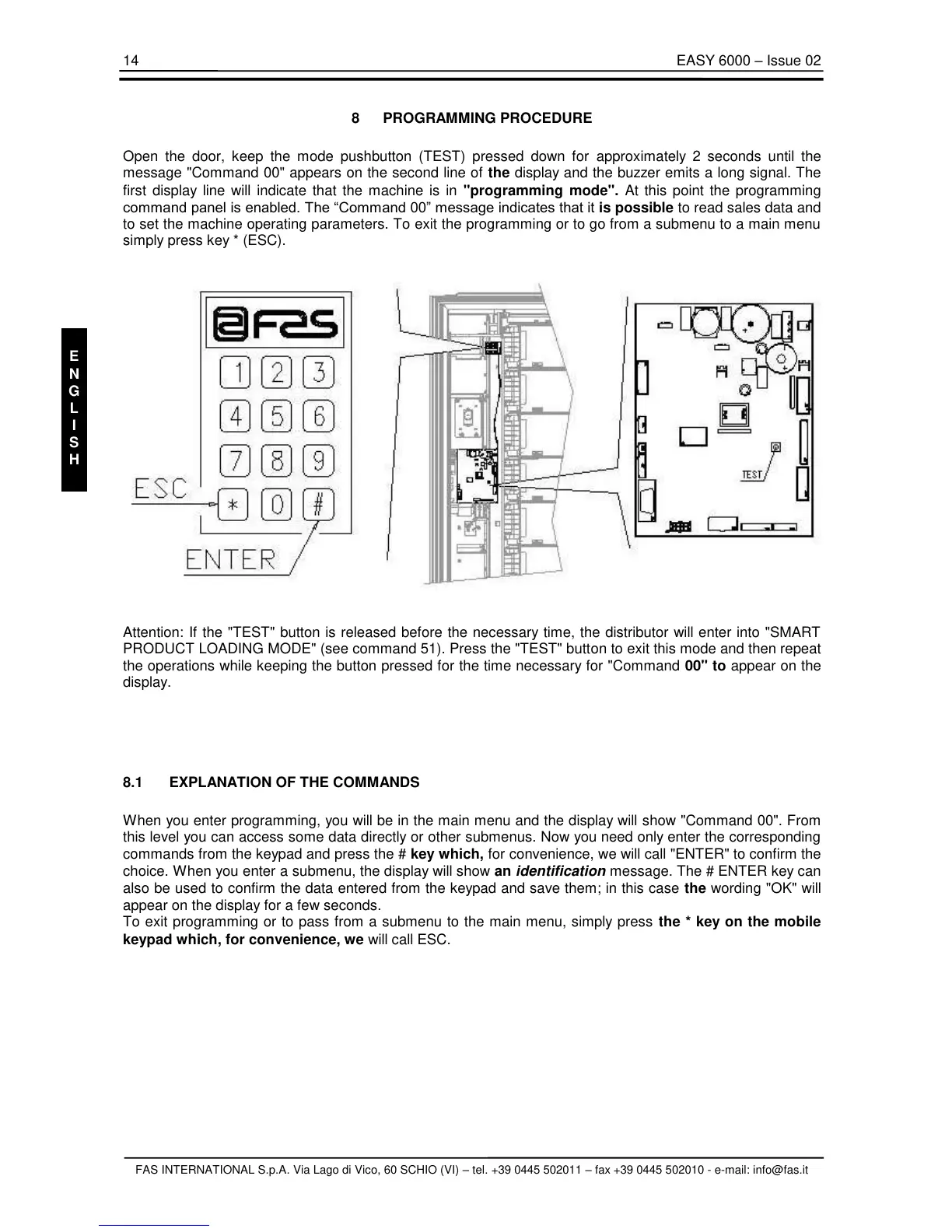 the operations while keeping the button pressed for the time necessary for "Command 00" to appear on the