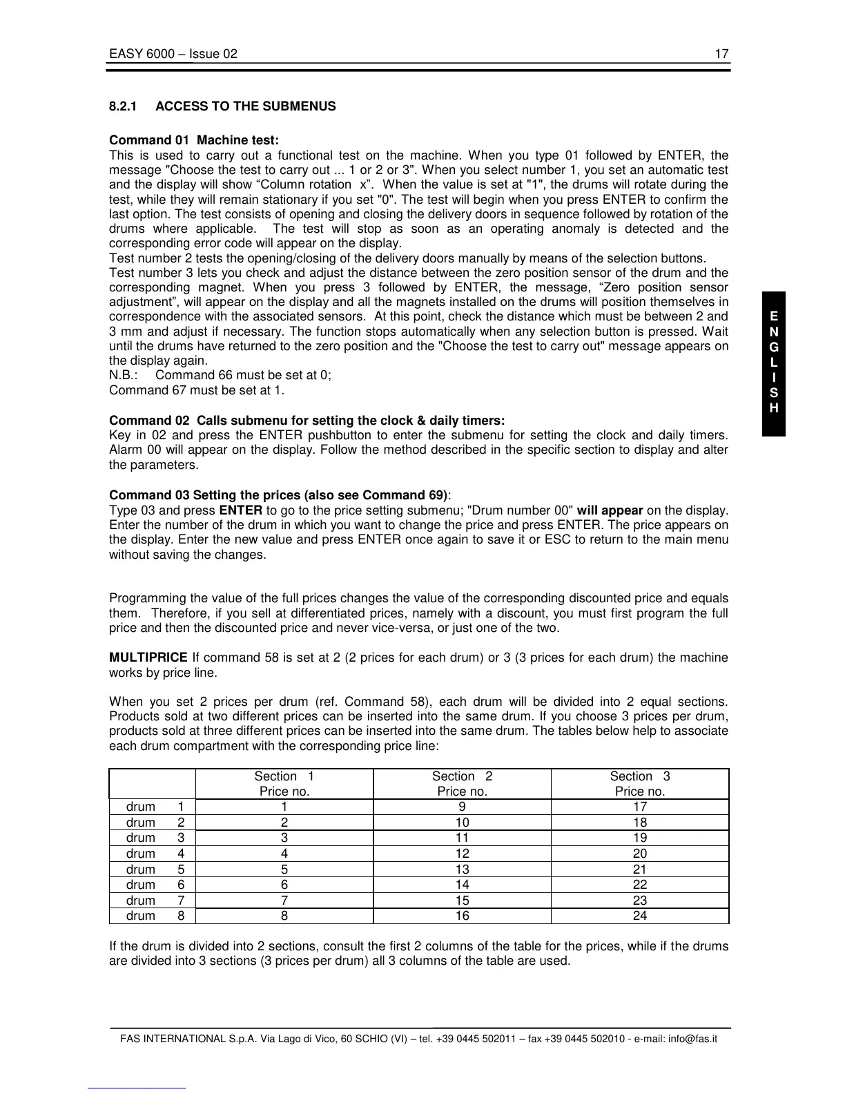 Type 03 and press ENTER to go to the price setting submenu; "Drum number 00" will appear on the display.
