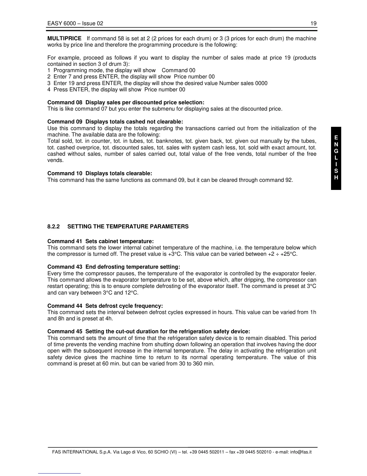 restart operating; this is to ensure complete defrosting of the evaporator itself. The command is preset at 3°C