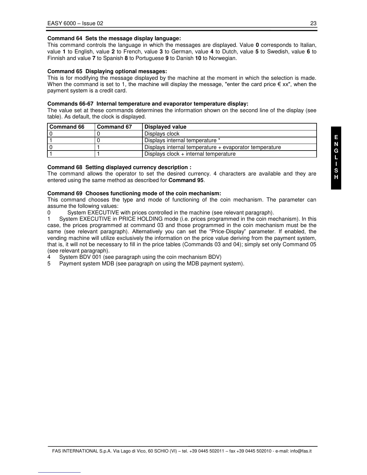 This command controls the language in which the messages are displayed. Value 0 corresponds to Italian,