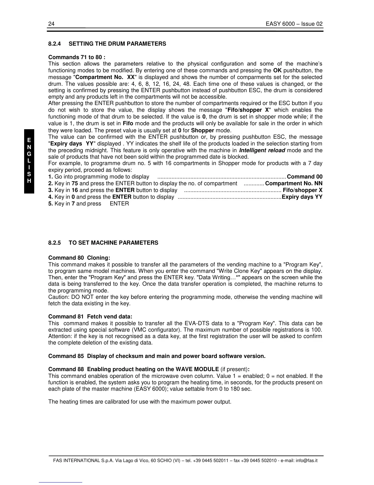 8.2.5 TO SET MACHINE PARAMETERS