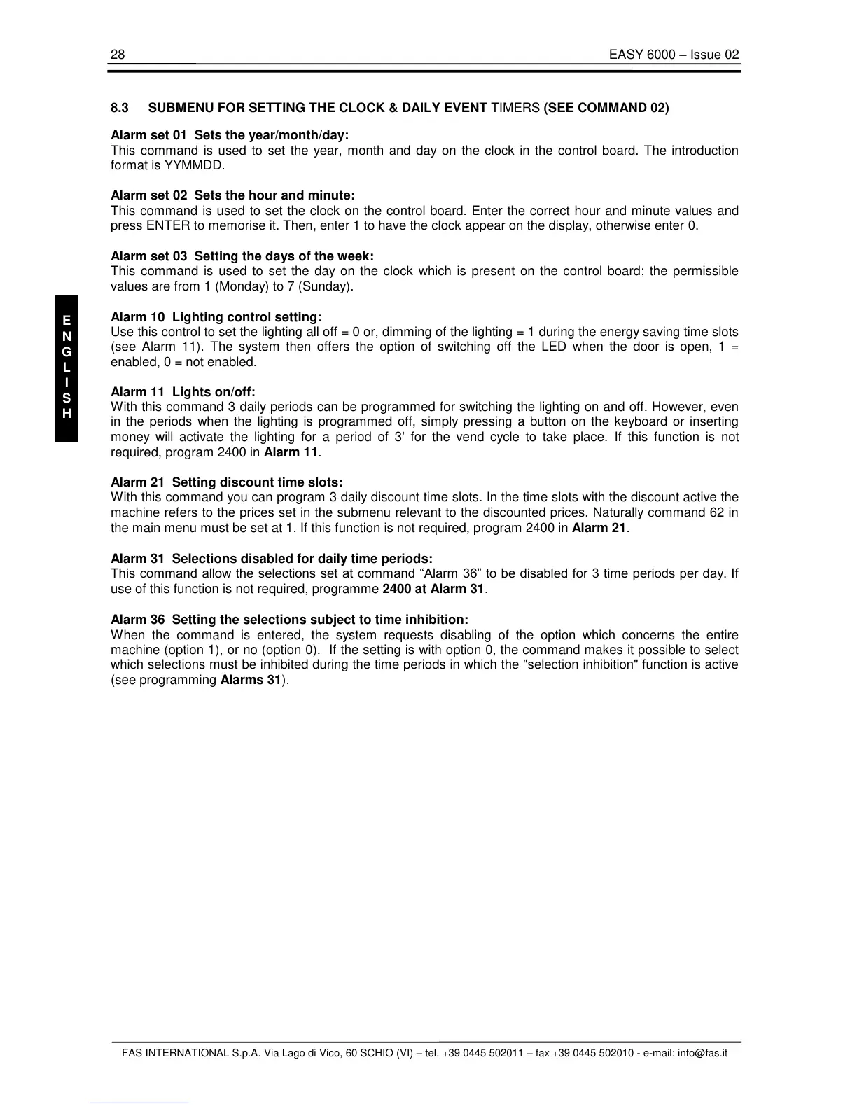 8.3 SUBMENU FOR SETTING THE CLOCK & DAILY EVENT TIMERS (SEE COMMAND 02)