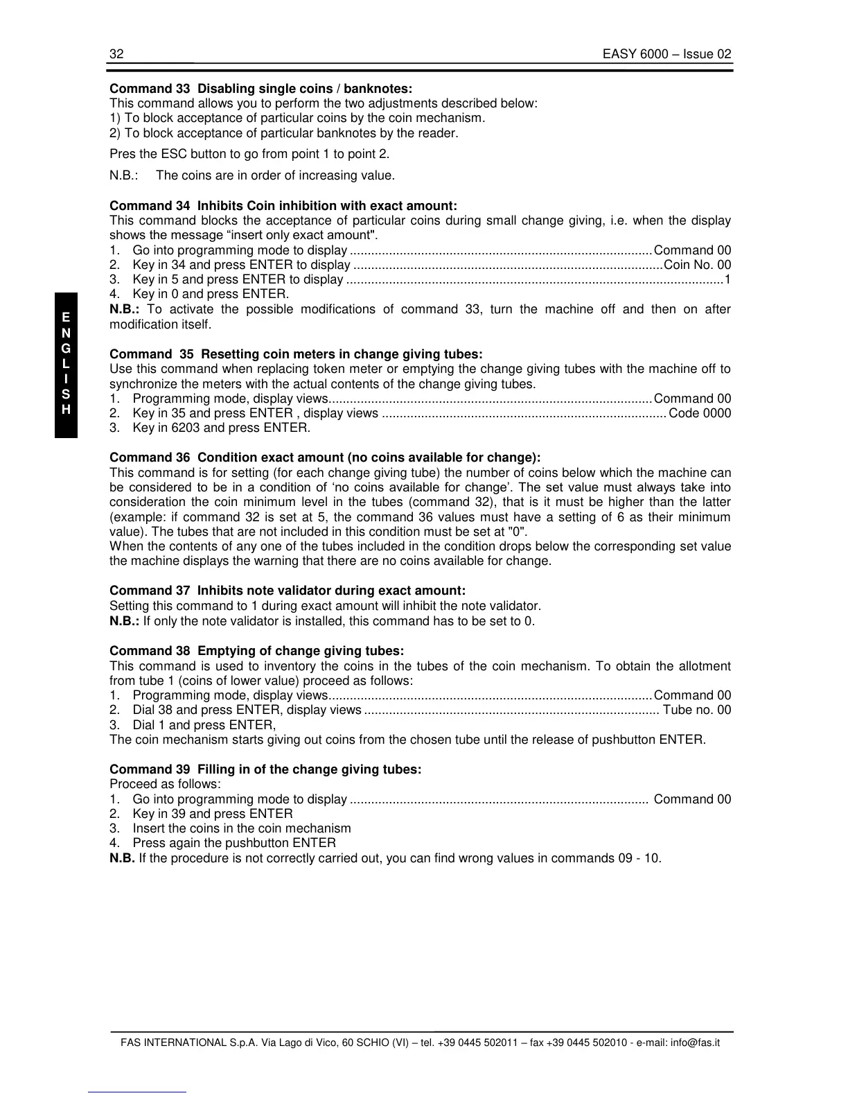 N.B.: To activate the possible modifications of command 33, turn the machine off and then on after