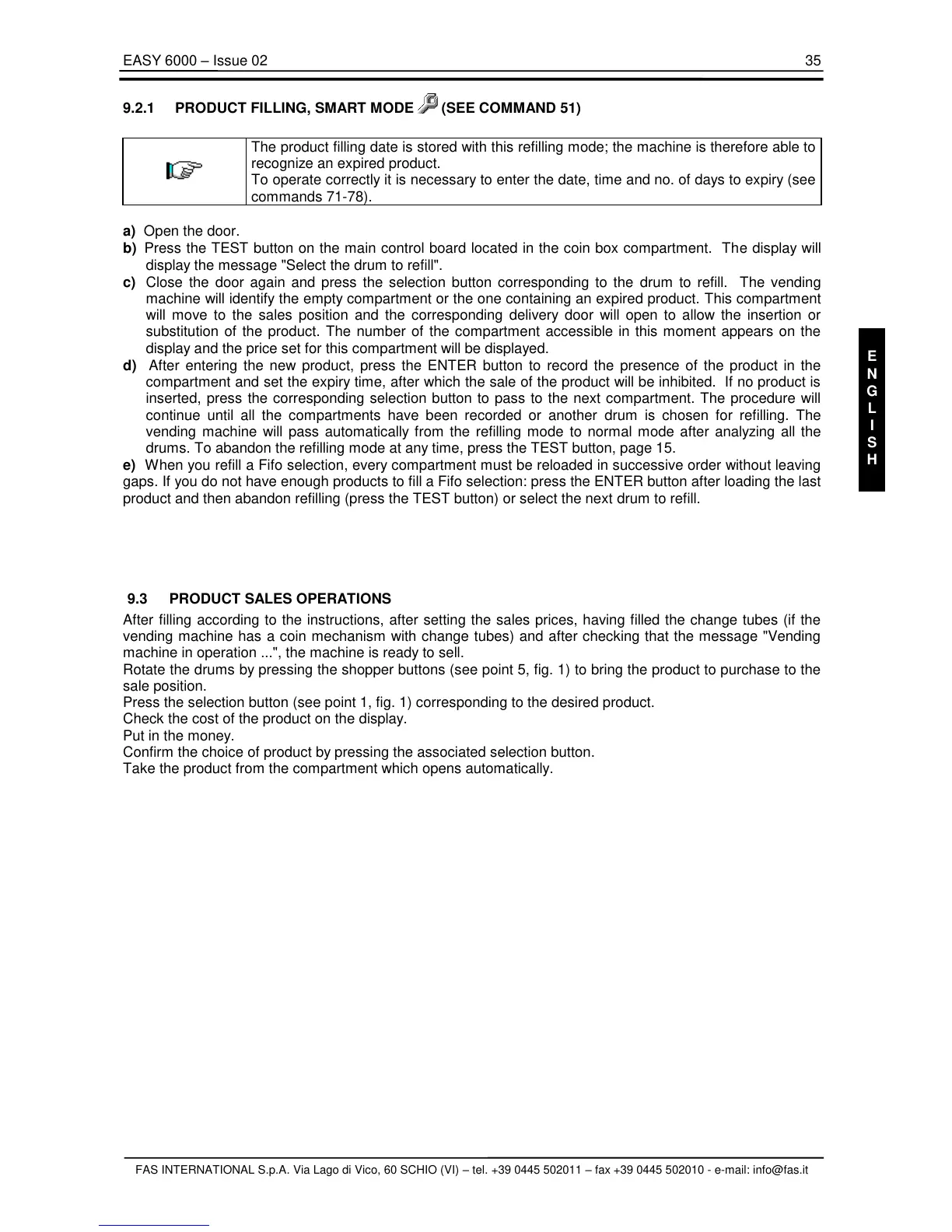 e) When you refill a Fifo selection, every compartment must be reloaded in successive order without leaving