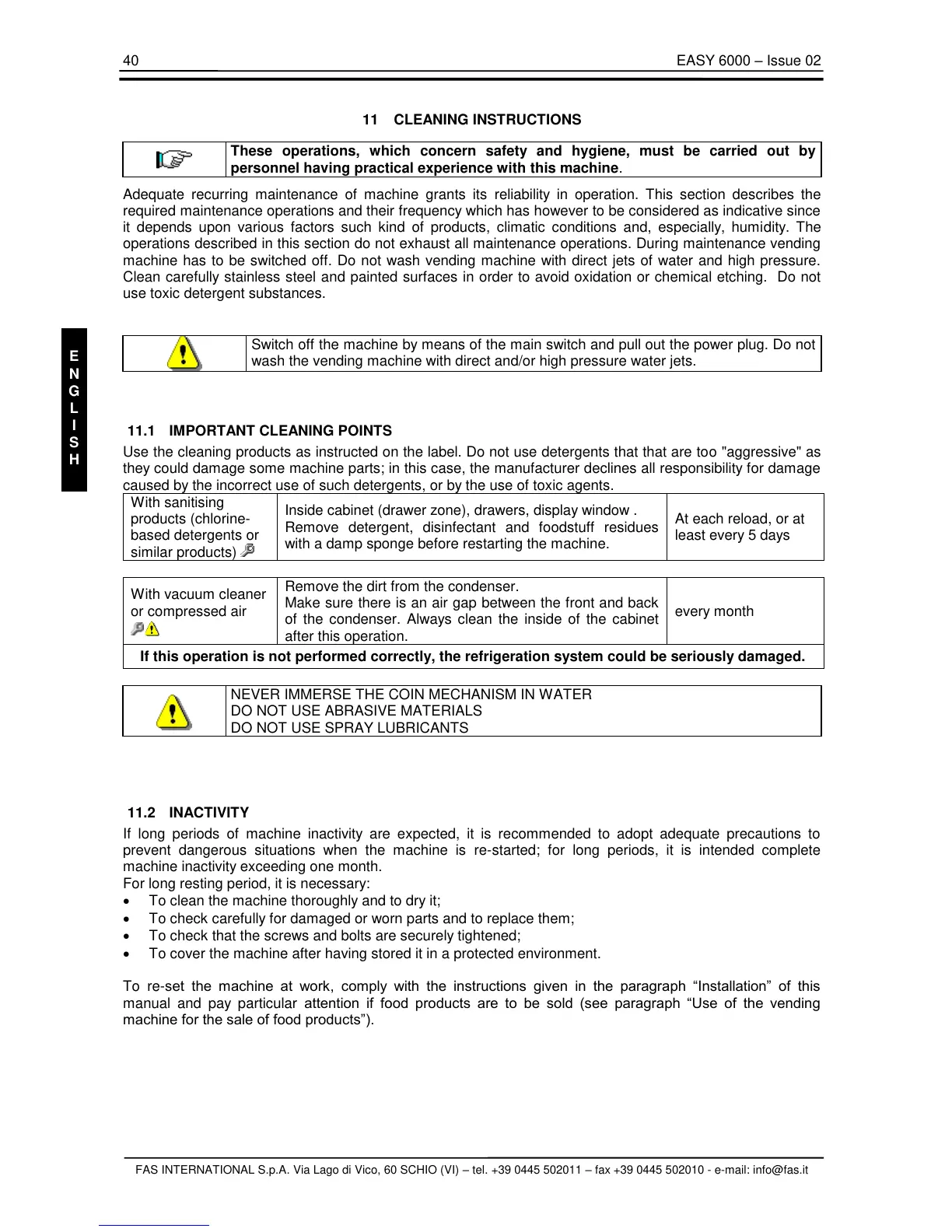 manual and pay particular attention if food products are to be sold (see paragraph “Use of the vending