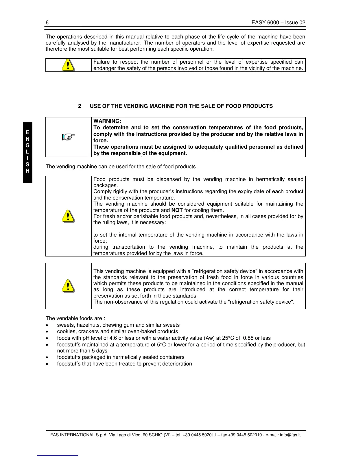 FAS INTERNATIONAL S.p.A. Via Lago di Vico, 60 SCHIO (VI) – tel. +39 0445 502011 – fax +39 0445 502010 - e-mail: info@fas.it