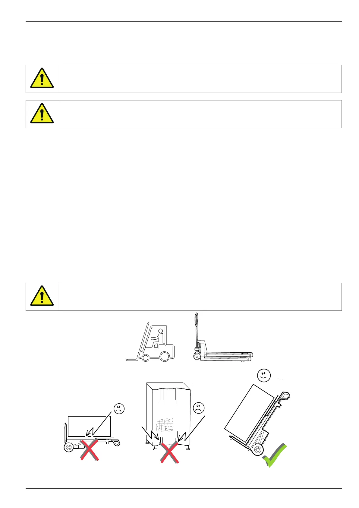 Incorrect transportation can result in the machine tilting. For this reason the machine must be correctly