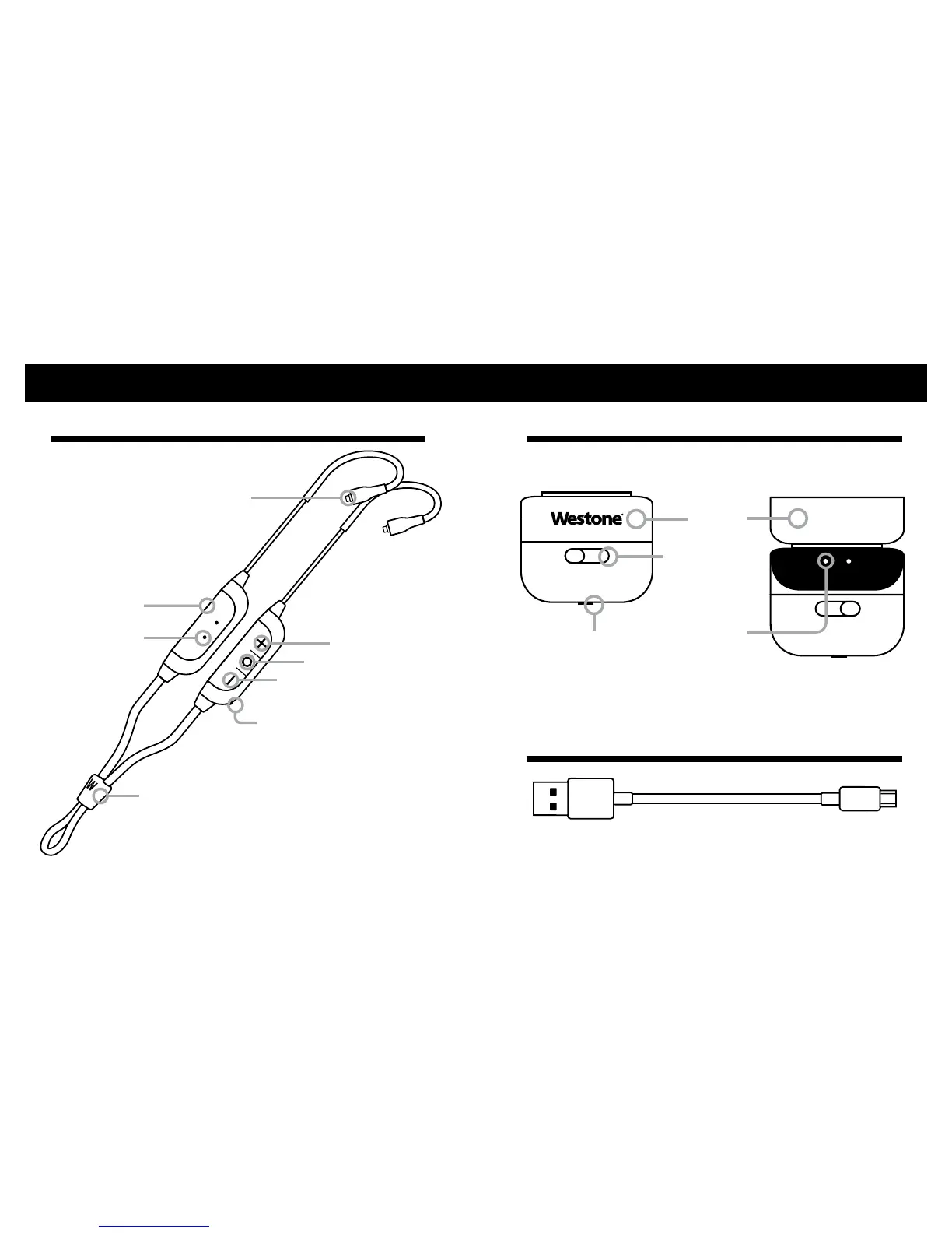 Westone Bluetooth Cable 2.0 - Product Component Overview; Bluetooth Cable 2.0 Components; Portable Charging Dock and Cord