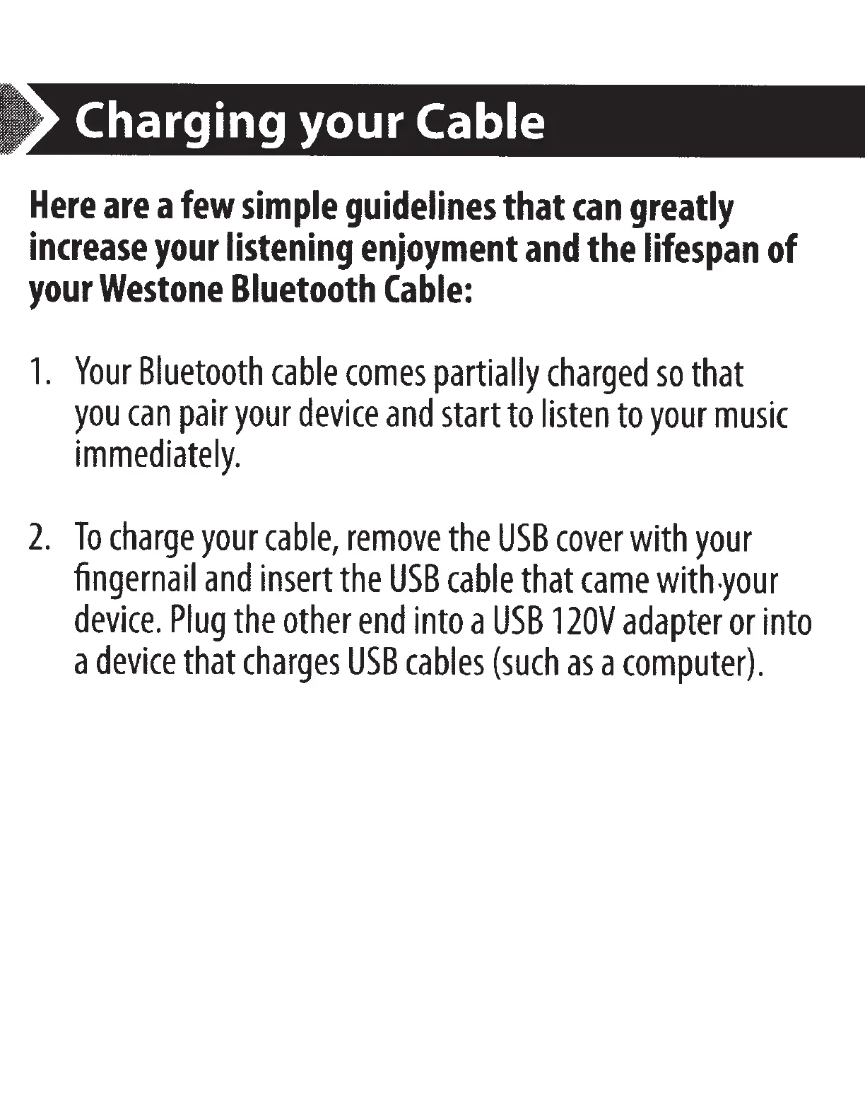 Westone Bluetooth Cable - Charging Your Cable; Charging Procedure