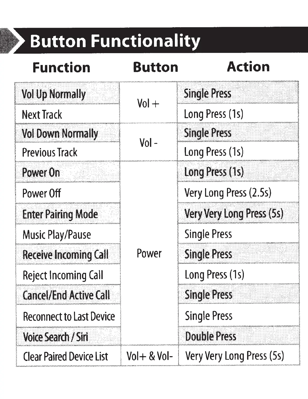 Westone Bluetooth Cable - Button Functionality; Volume and Power Controls; Call and Media Controls
