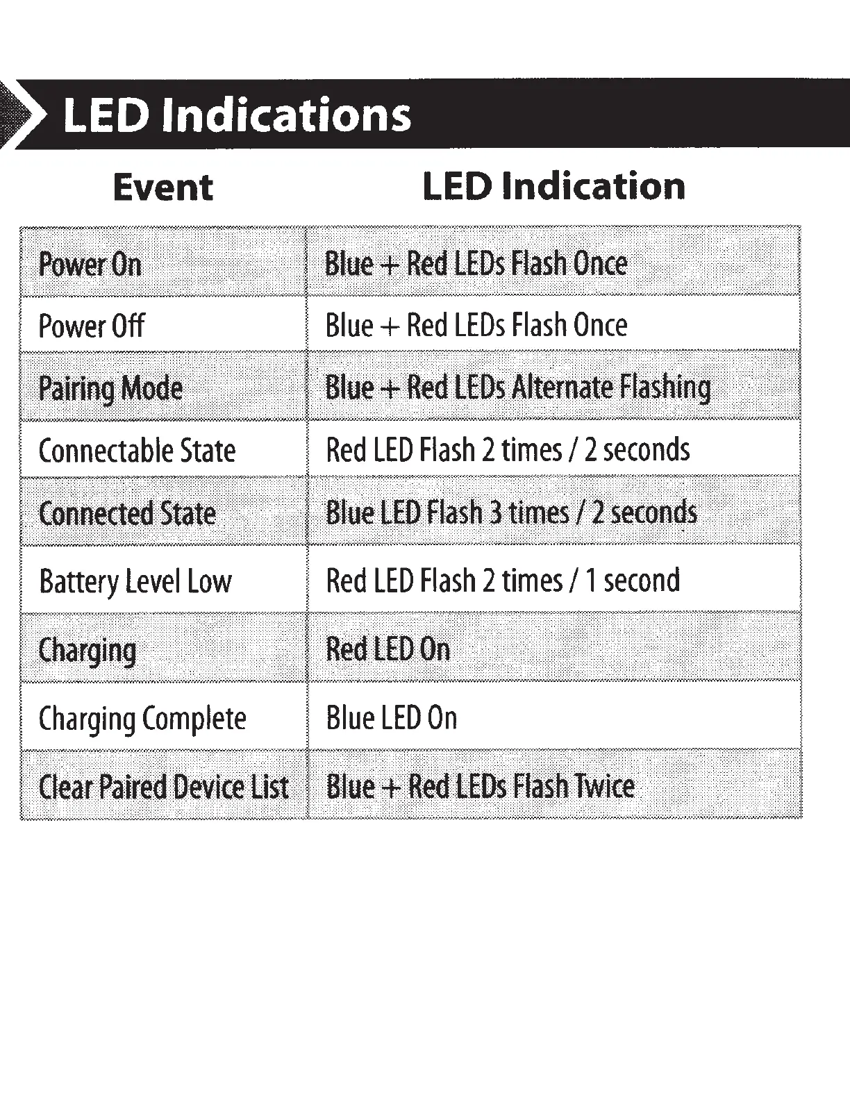 Westone Bluetooth Cable - LED Indications; Status Light Meanings