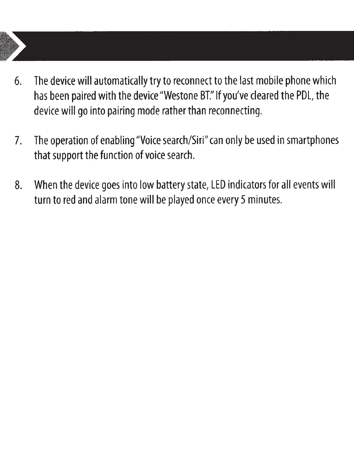 Westone Bluetooth Cable - Troubleshooting - Device Behavior; Auto-Reconnect and Voice Search; Low Battery Alerts