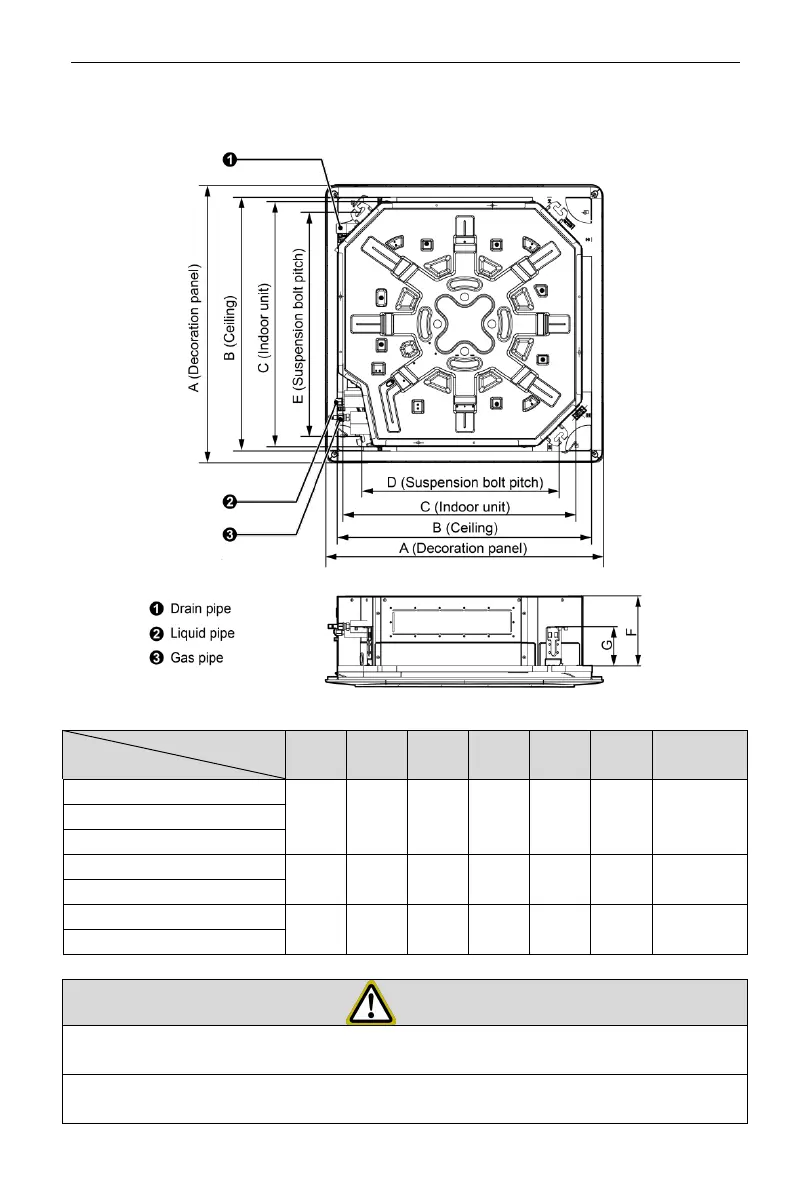 (1) Drilling of ceiling opening and installation of air conditioner must be performed