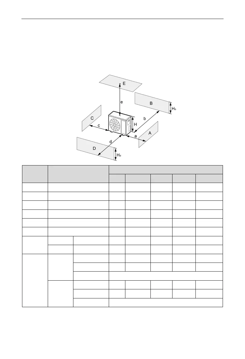 (1) Diagram of installation space and location for outdoor unit (Notice: for