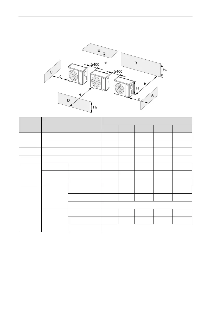2) When two or more outdoor units are to be installed side by side.
