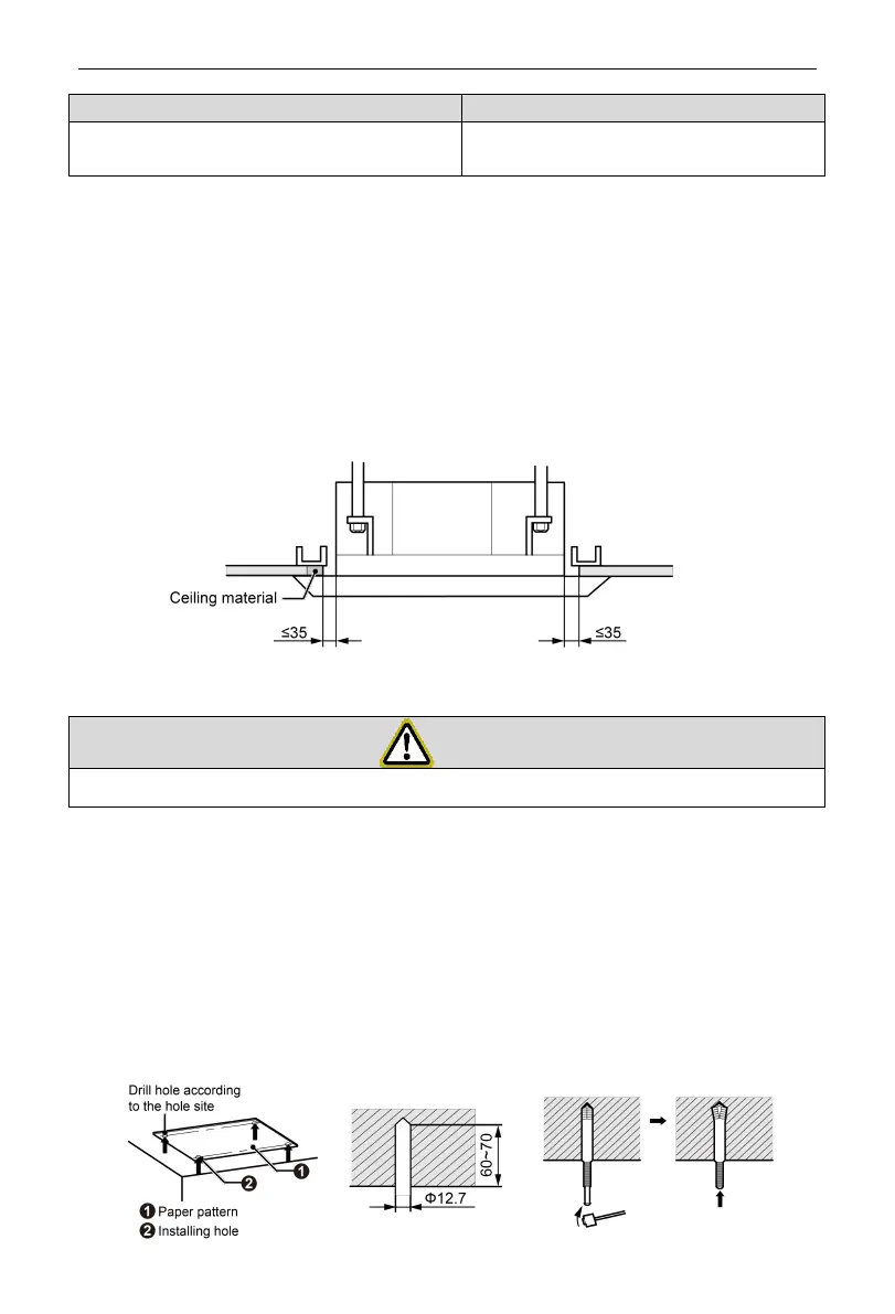 between the ceiling and the unit should be 35mm or less. If the distance between