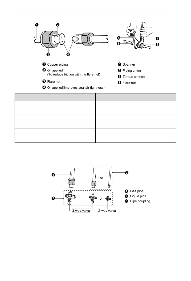 The method of screwing the flare nut is the same with that for indoor unit.