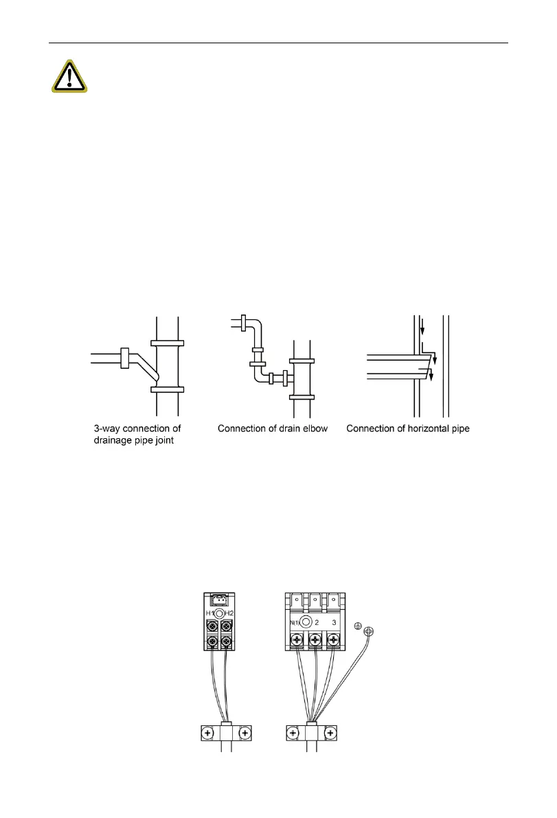 (3) Drain branch should be connected to the vertical or horizontal part of the