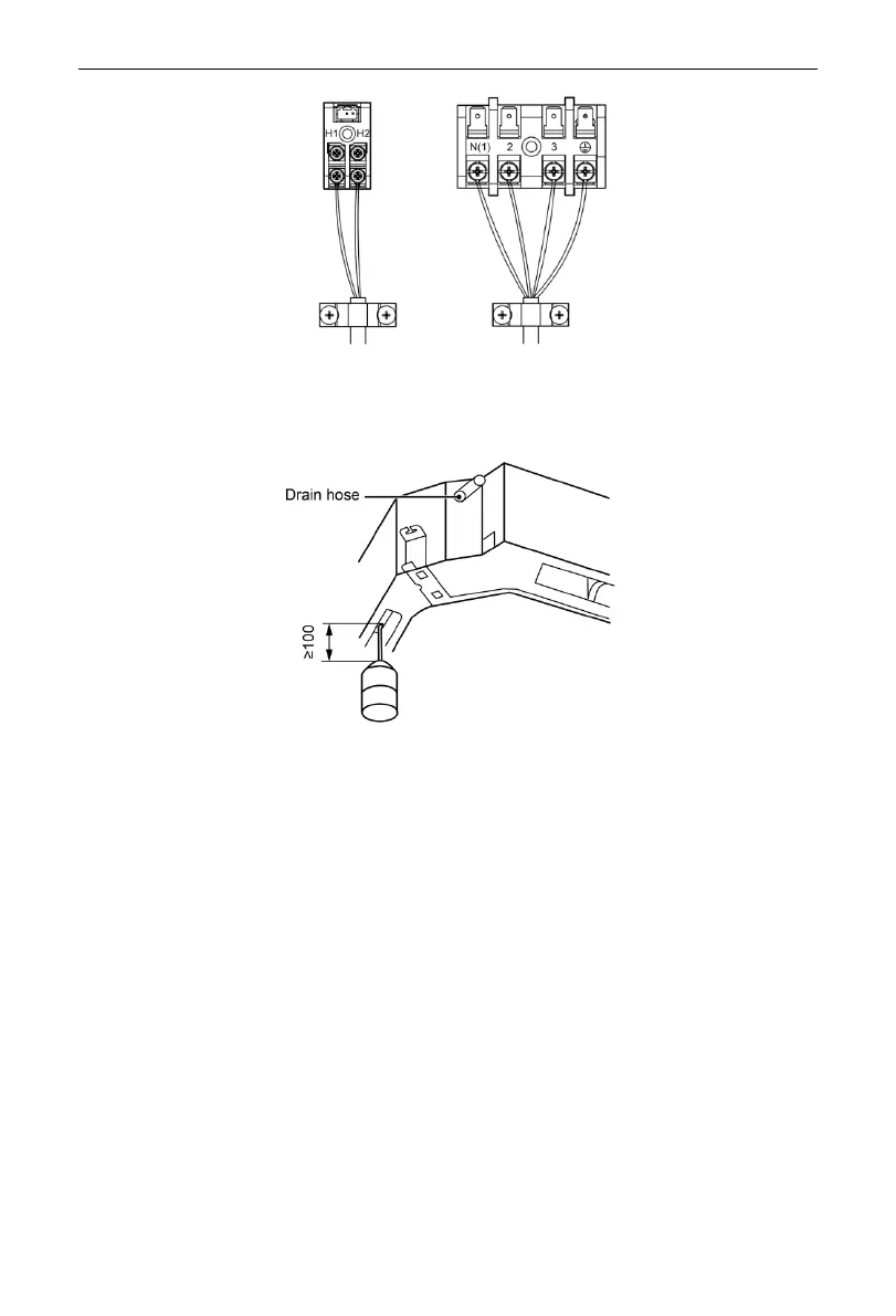 body of the indoor unit (Do not let the conducting wires get involved into the