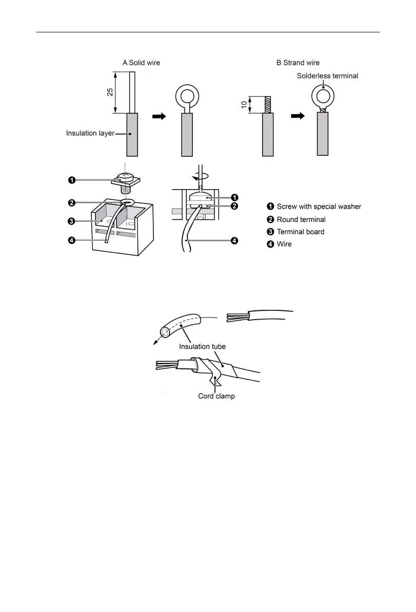 Lead the connection wire and power cord through the insulation tube. Then fix