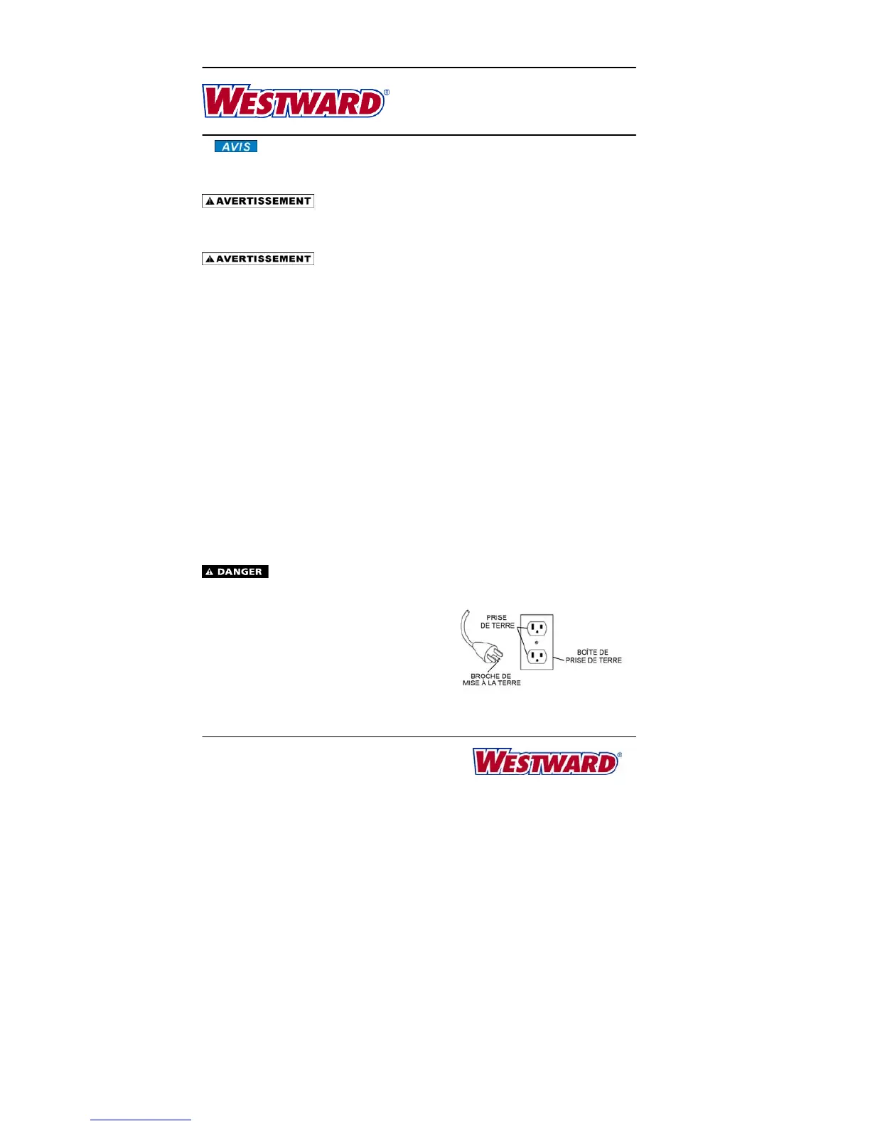 Instructions D’Opération et Partie Manuelle de Westward