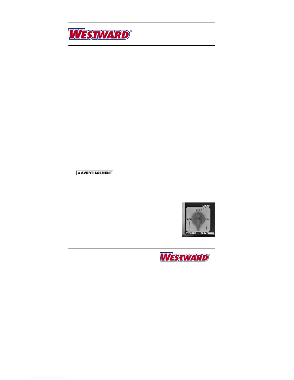 Instructions D’Opération et Partie Manuelle de Westward
