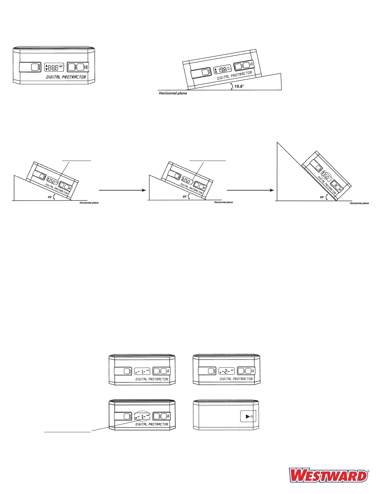 • Normally the digital protractor doesn’t need to be recalibrated if you do not take the battery out of the unit, or you do not turn it off by pressing