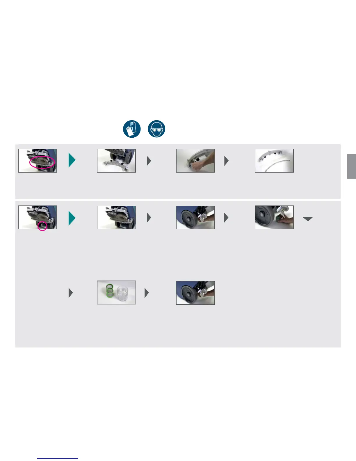 Odkręcić śruby listwy zaciskowej Odwrócić lub wymienić wargę ssącą