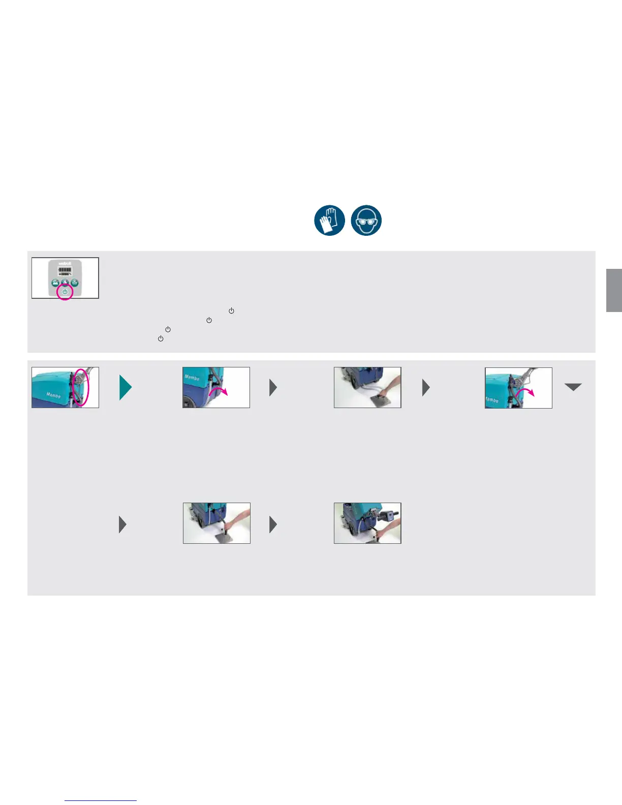 Inclinar o depósito de água suja para esvazie a água restante