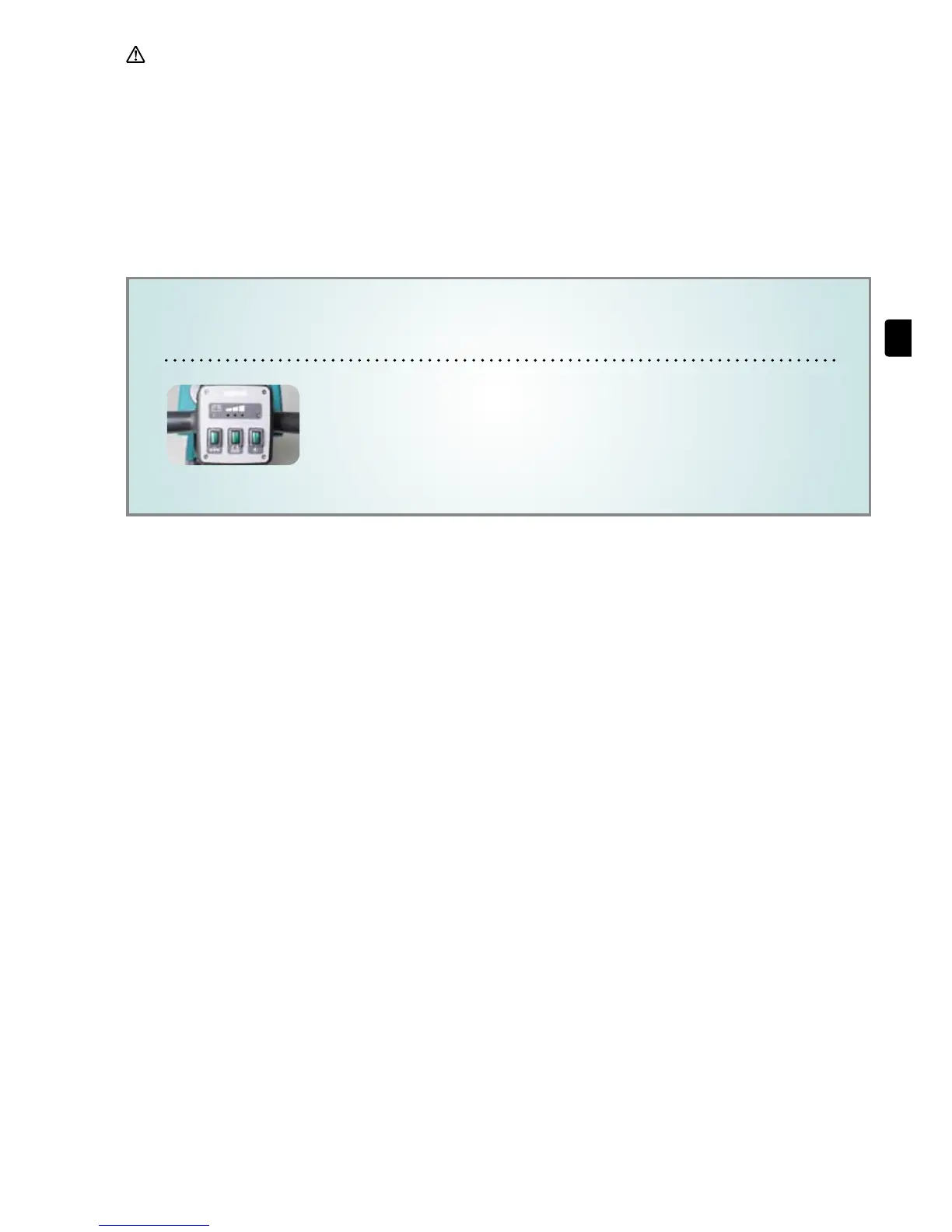• When machine is stopped, the brush set must be switched off immediately to prevent any damage to floor coverings.