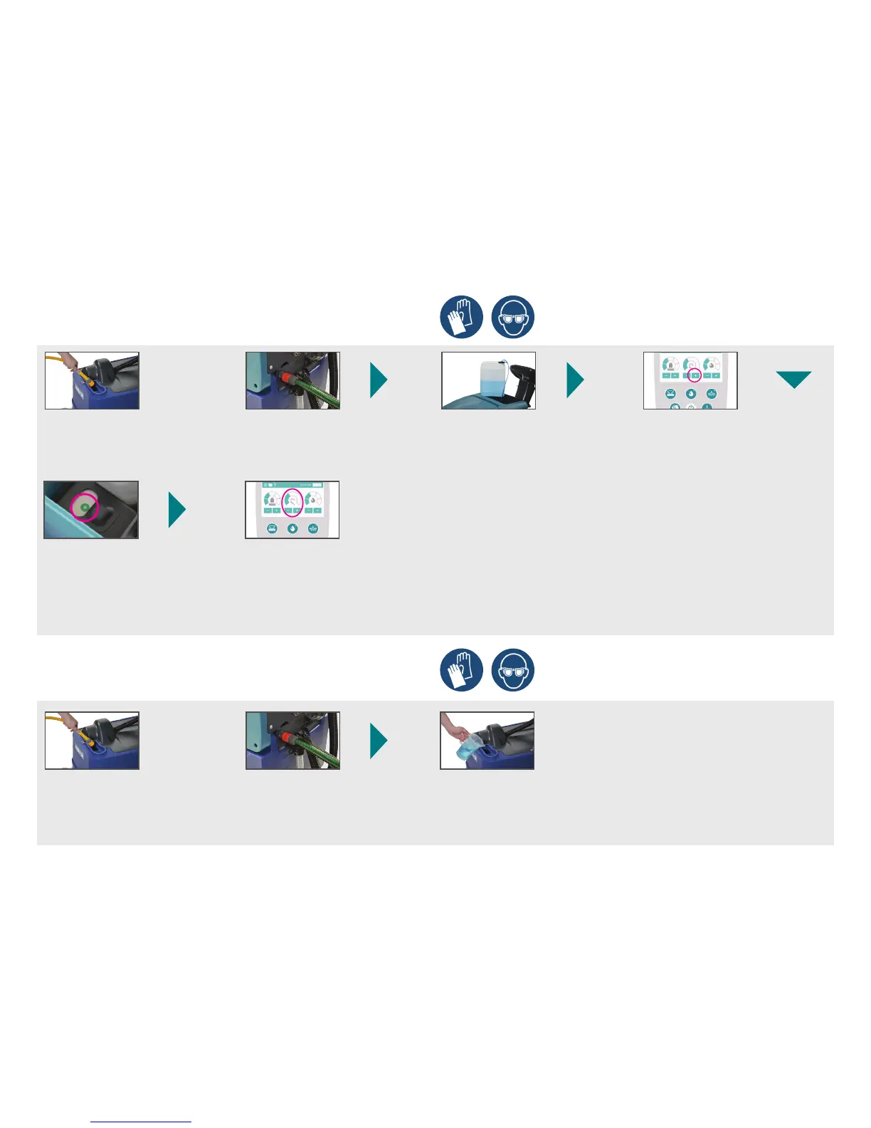 Fill up with chemicals Switch on dosing system