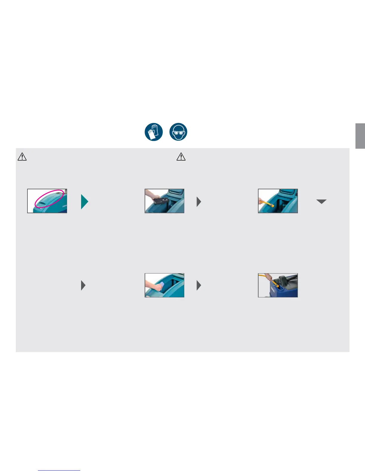 FORSIGTIG: Maskinen må ikke rengøres med højtryksrenser/damp