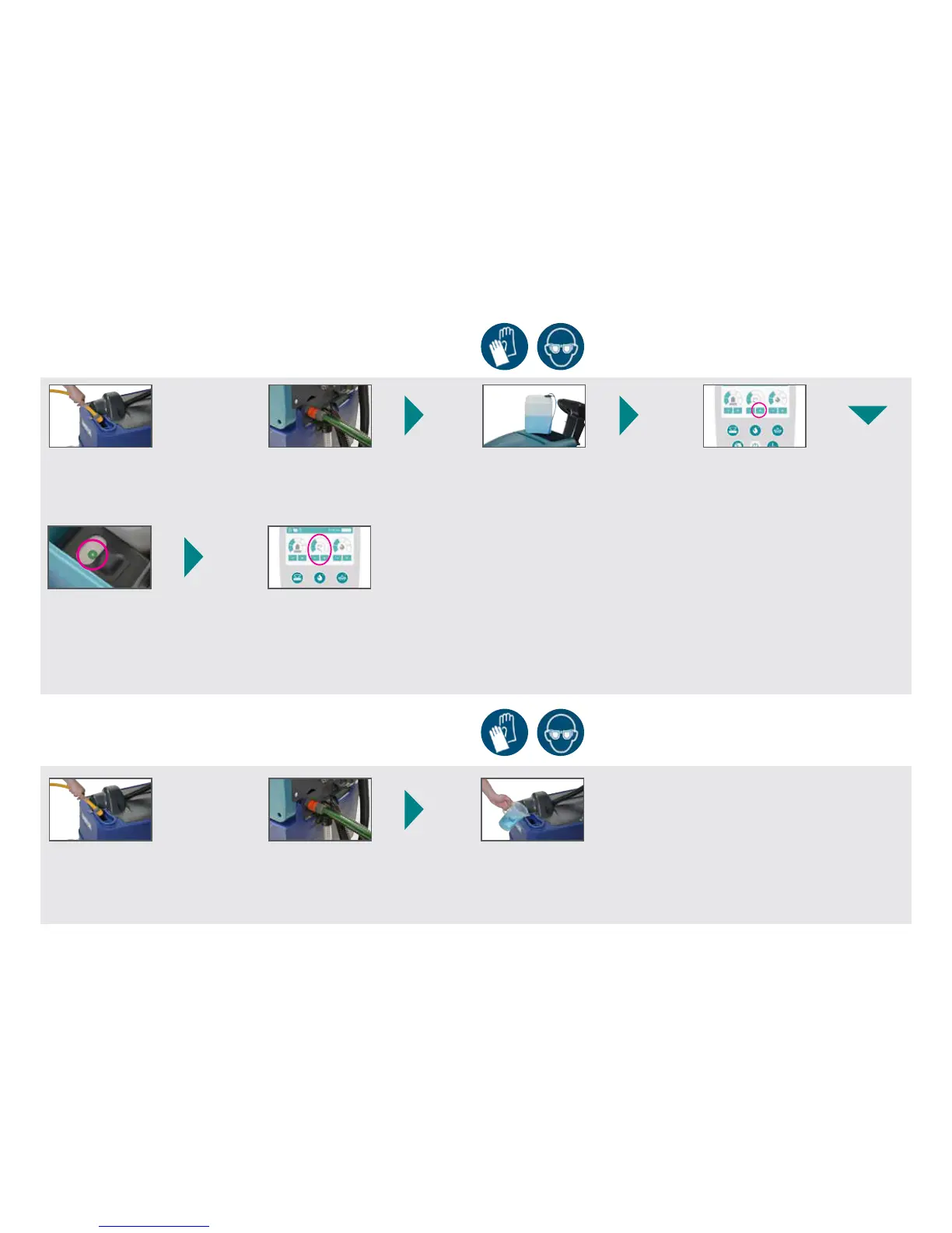 Fill up with chemicals Switch on dosing system
