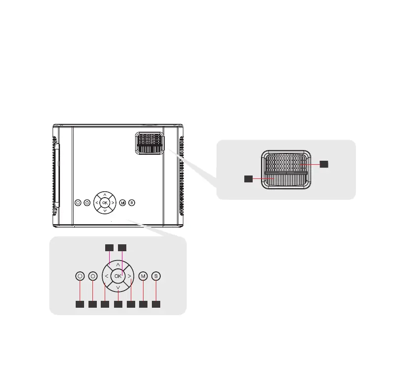 Do not look directly into the lens to avoid eye damage as this projector emits strong light during