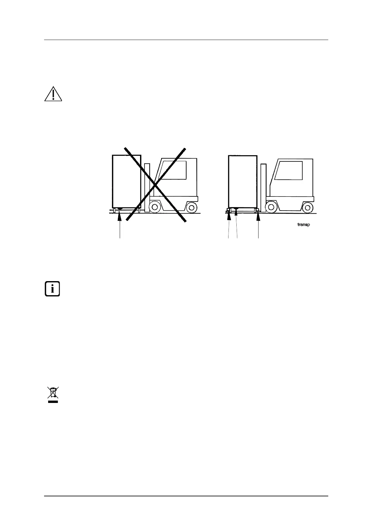 not be transported without a pallet or other support. Some form of support beam