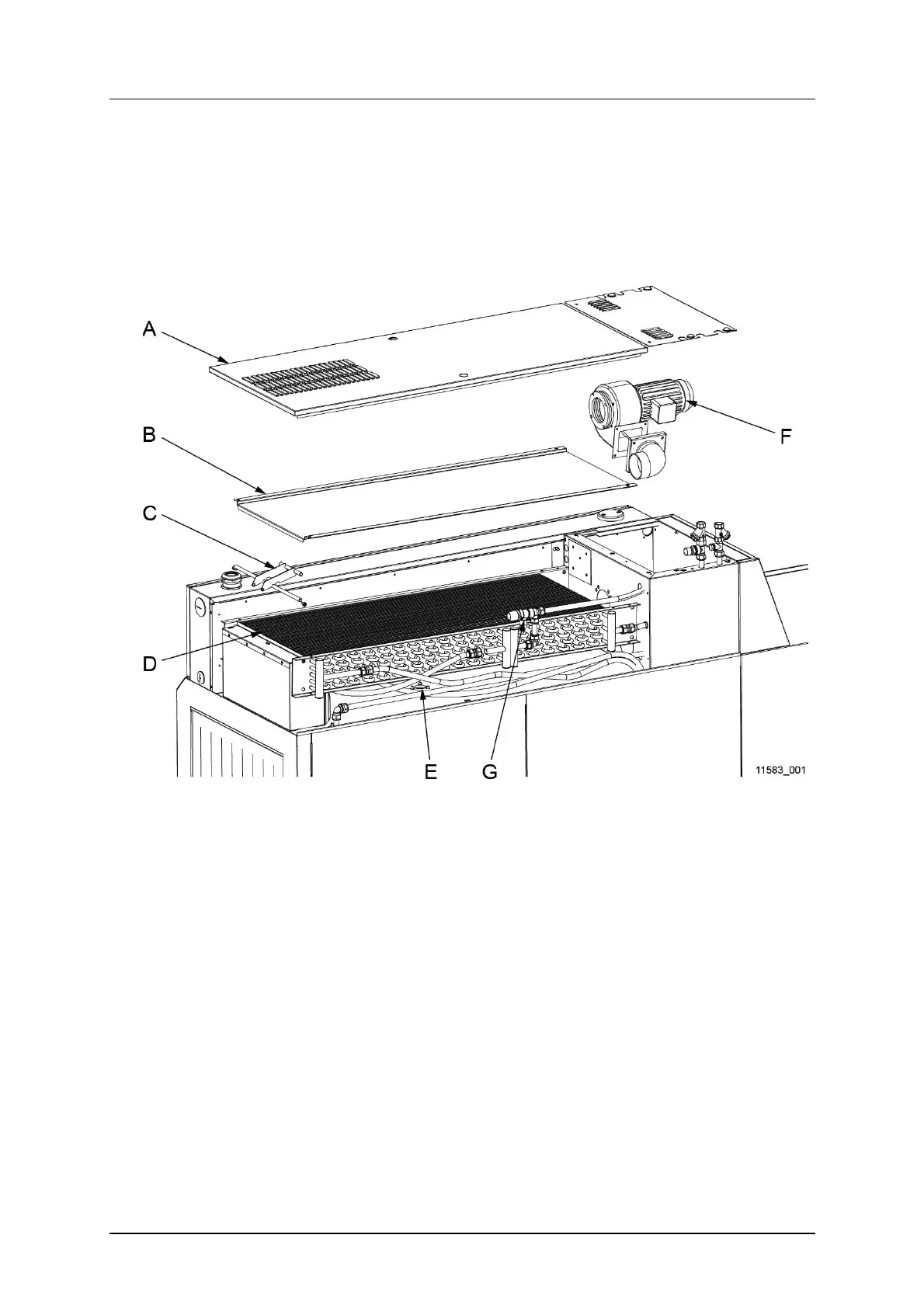 The machine's heat recovery unit (D) must be cleaned at least once a year or