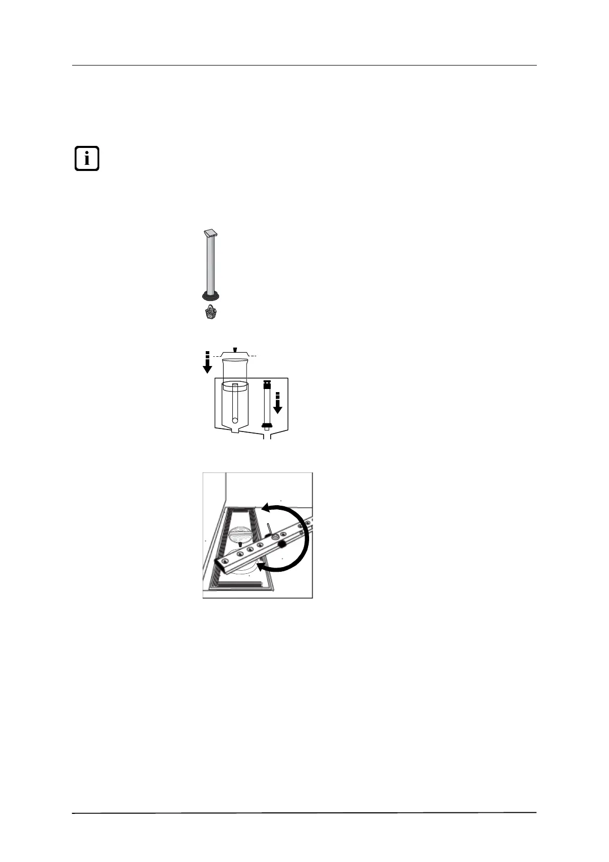 • That removable parts are in place, level pipe (12), tank filter and cover