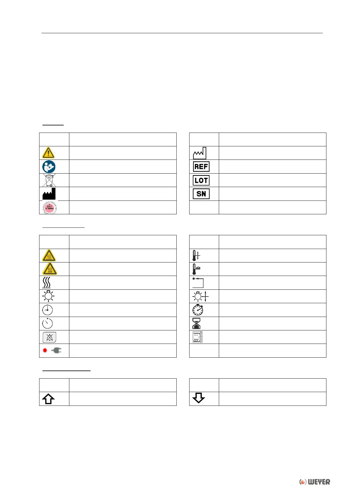The following symbols are used for the examination and treatment table Easy Care and in its