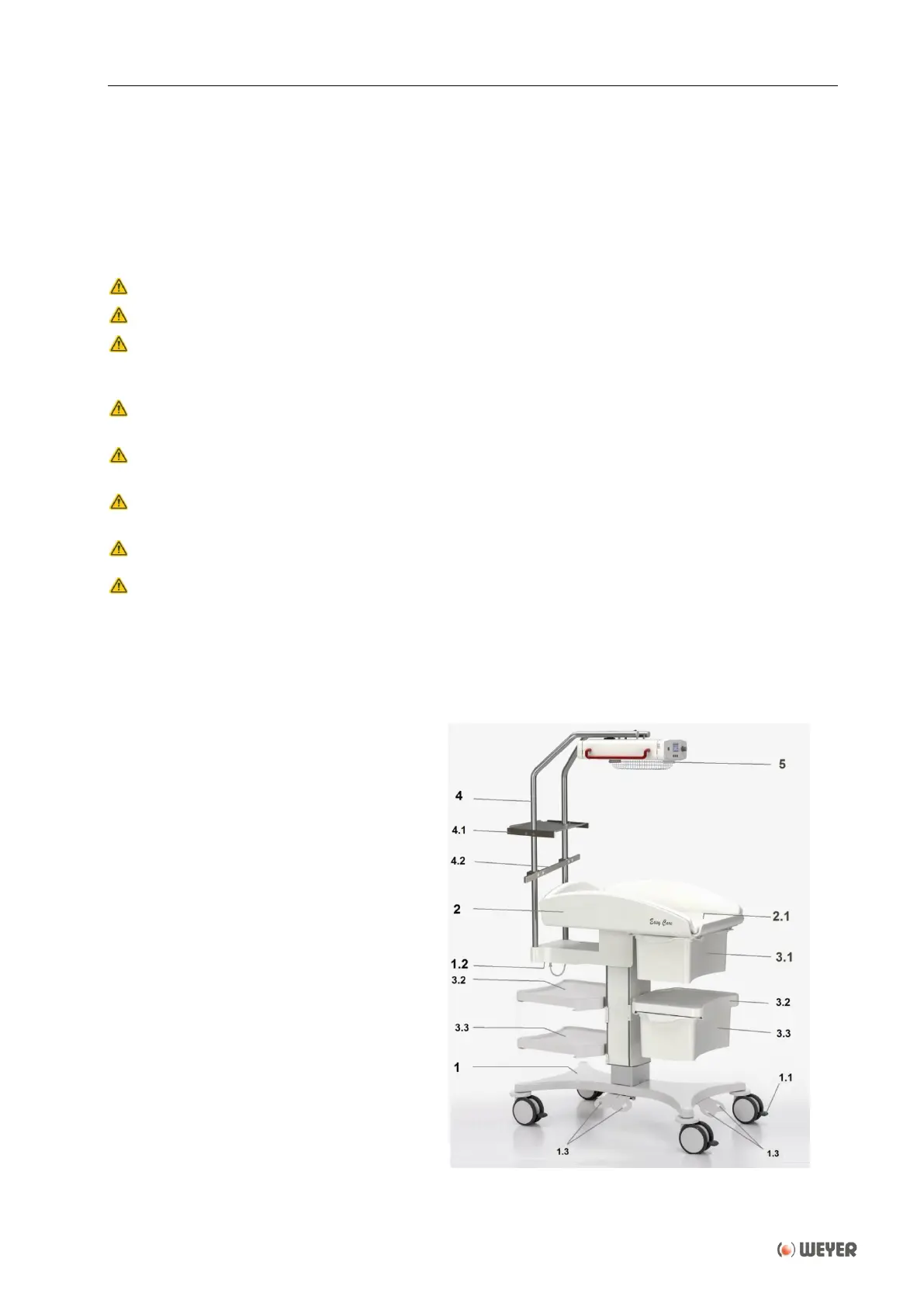 The examination and treatment table Easy Care consist of the following components assemblies: